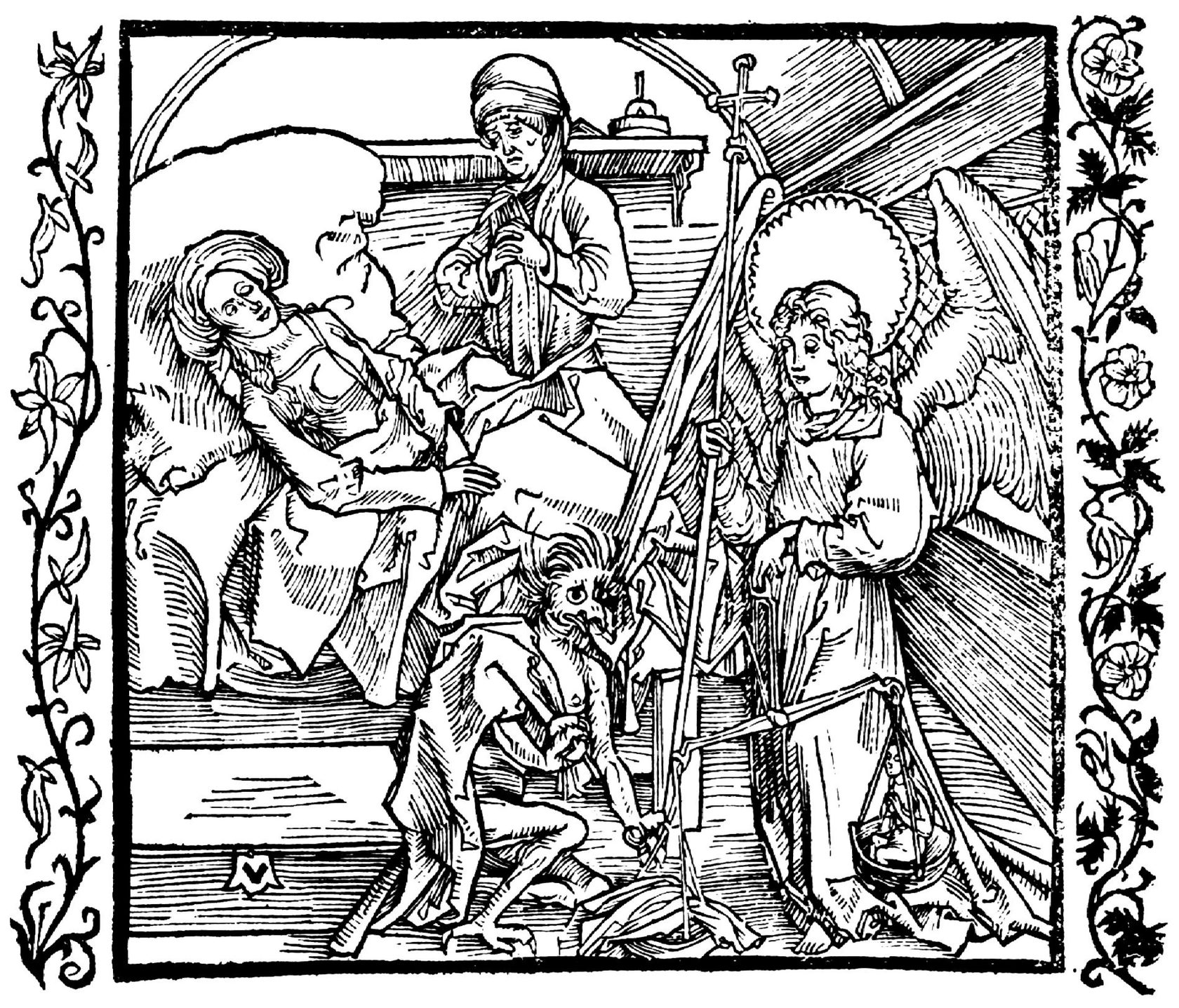 «Дьявол является даже к подножию распятия за душой Иисуса, не зная, разумеется, о его божественности, — но нечистого отгоняет мечом архангел Гавриил.»